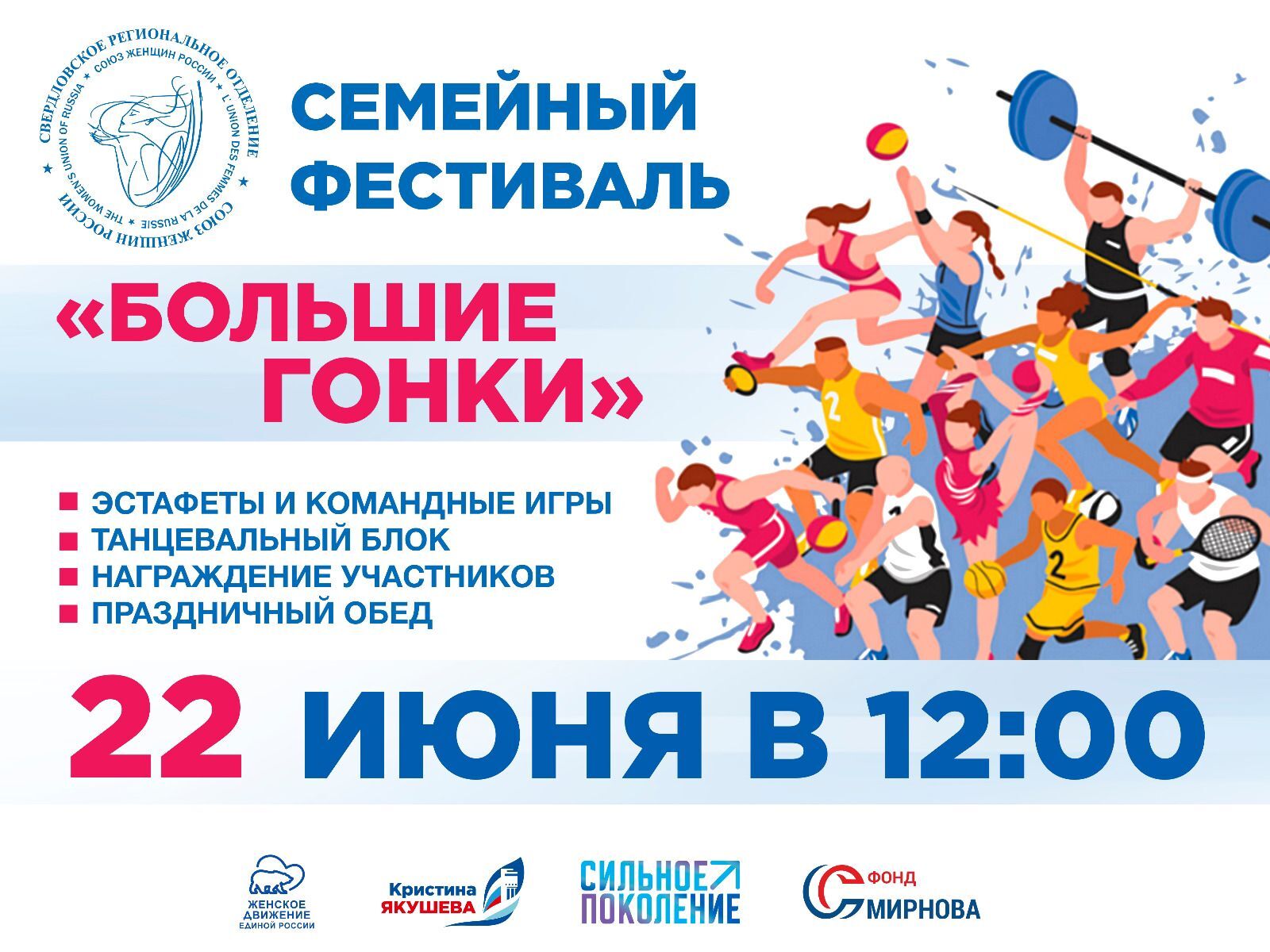 Дорогие друзья! Союз женщин России Свердловское отделение приглашает вас и ваших близких принять участие в семейном фестивале «Большие гонки».