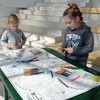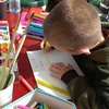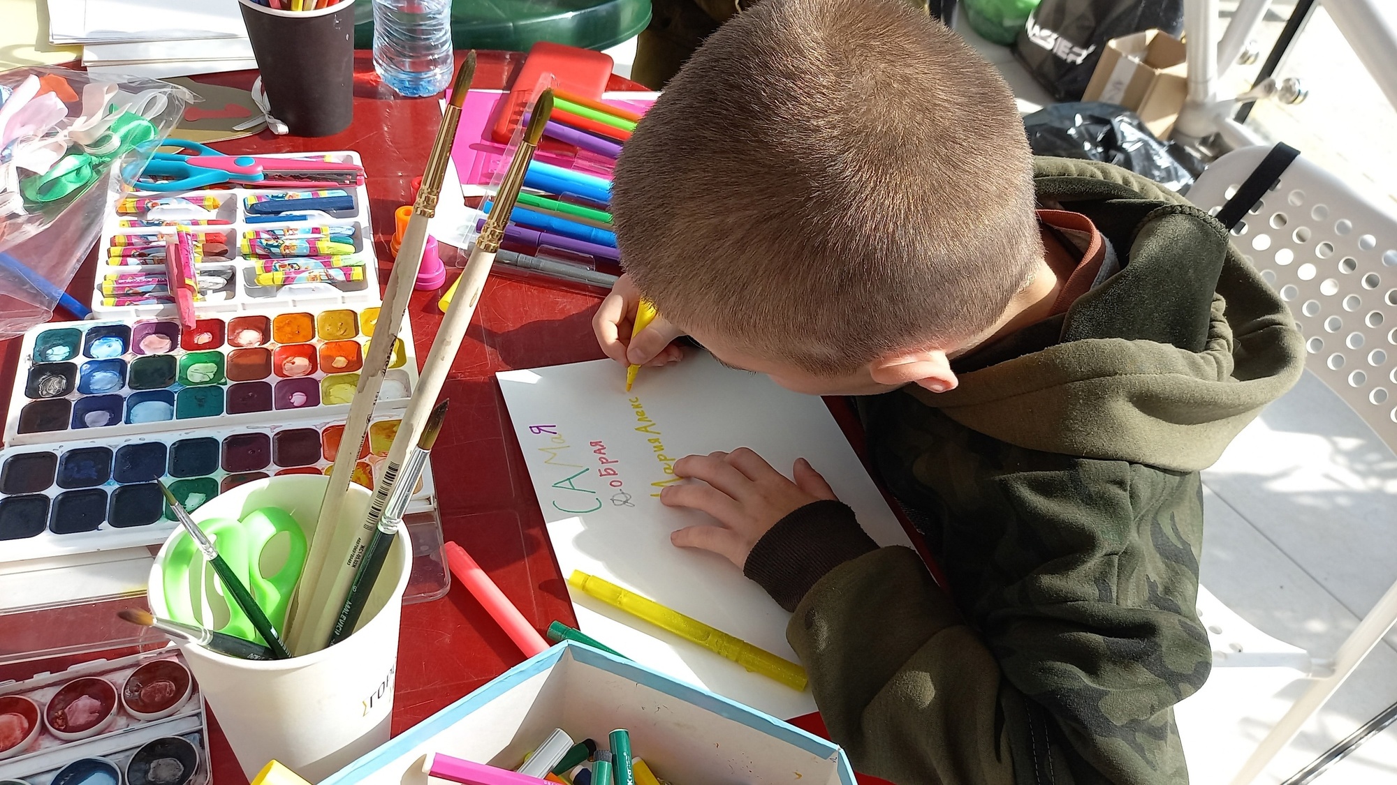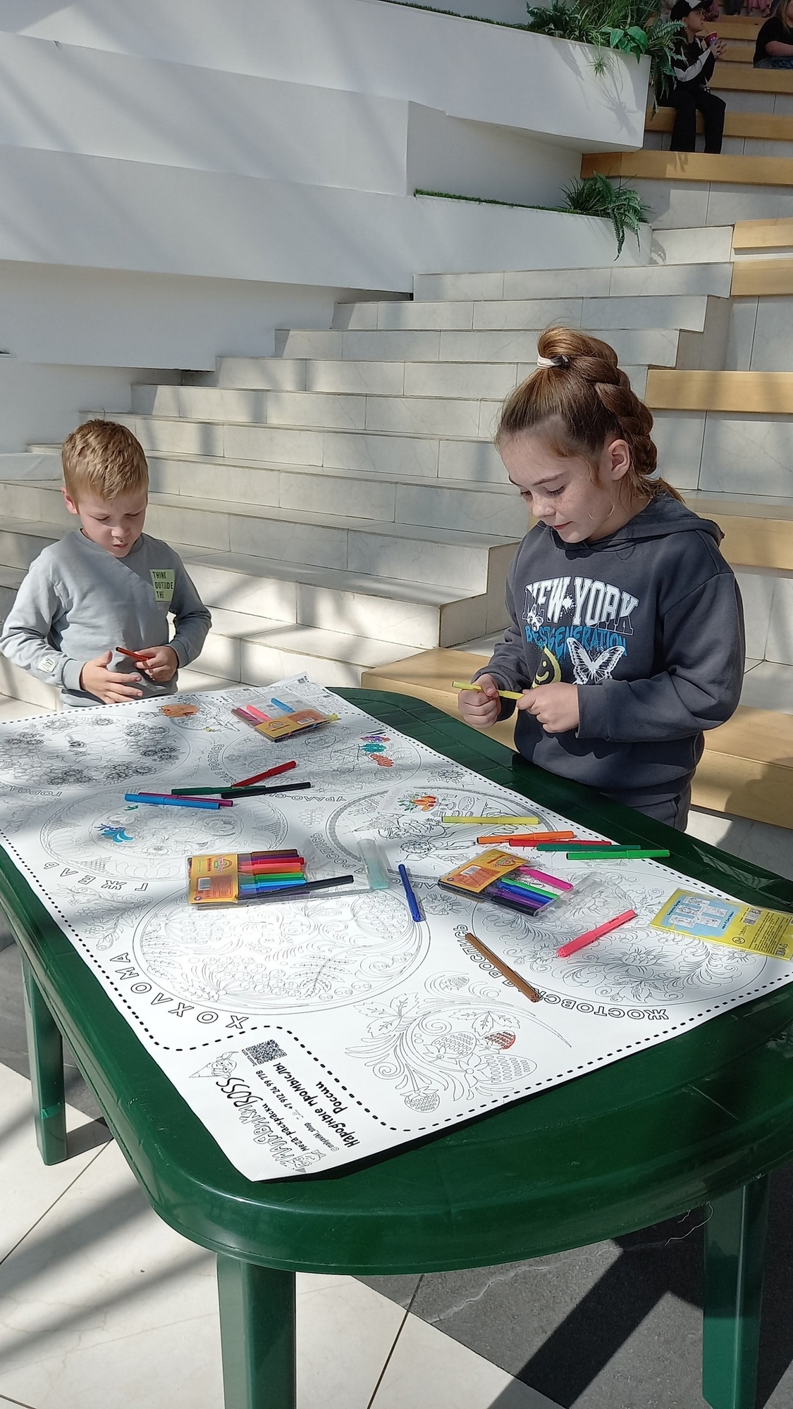 Приятно было наблюдать, как дети на открытках подписывали добрые пожелания для своей учительницы. Гигантскую раскраску предоставила Наталья Волянская «Малявки Босс». Каждый ребёнок внес свой вклад в шедевр.