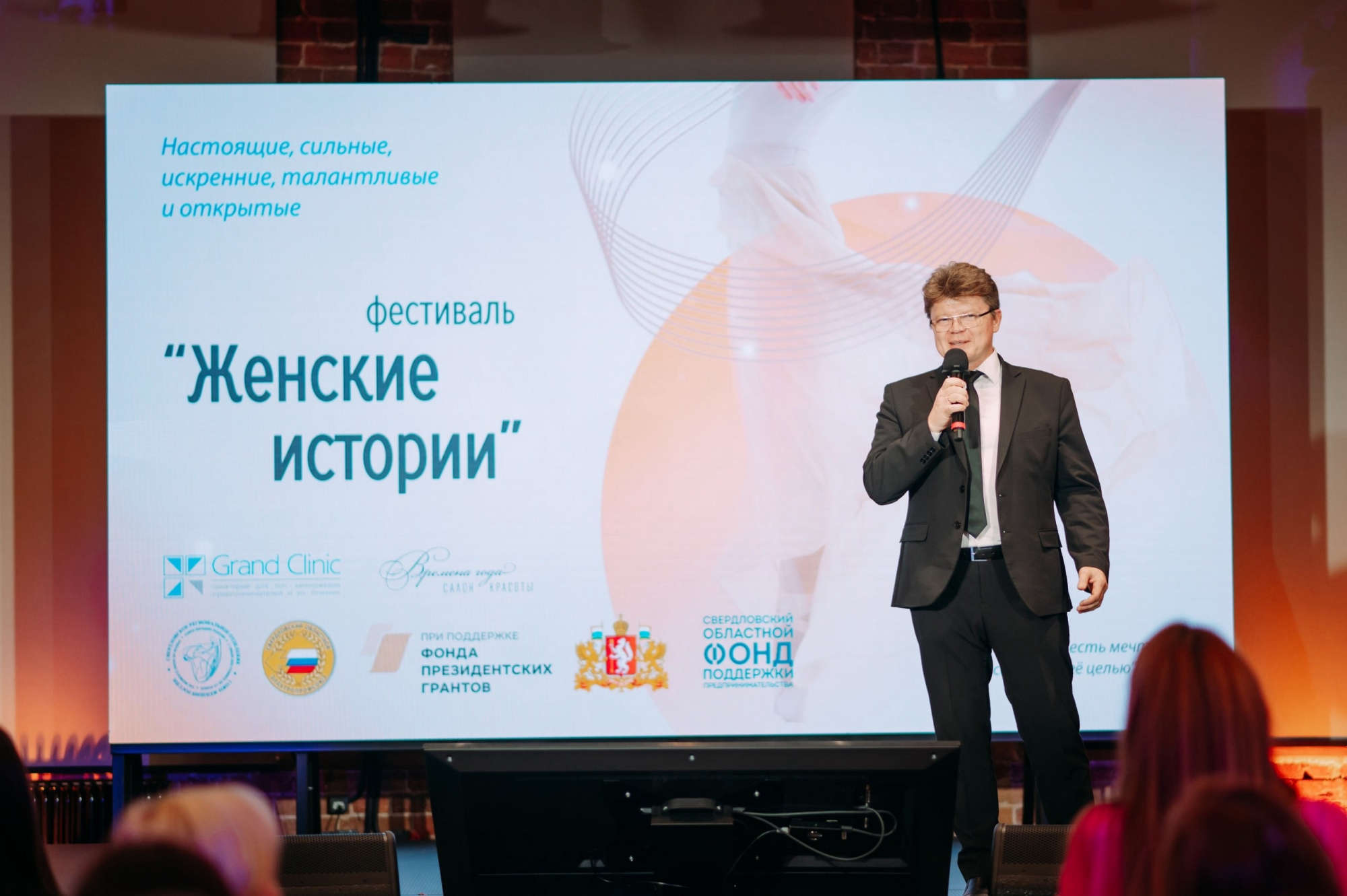 Открыли фестиваль Наталья Гурченок, и.о. директора Департамента внутренней политики Свердловской области, Мельников Александр Павлович, председатель Свердловский областной Электропрофсоюз , Ирина Богинская , председатель клуба женщин-предпринимателей Свердловского регионального отделения Союза женщин России. Также Ирина Богинская является основателем «Гранд Клиник Екатеринбург” и уже много лет ведет просветительскую работу о важности сохранения женского здоровья, именно об этом она рассказала собравшимся.