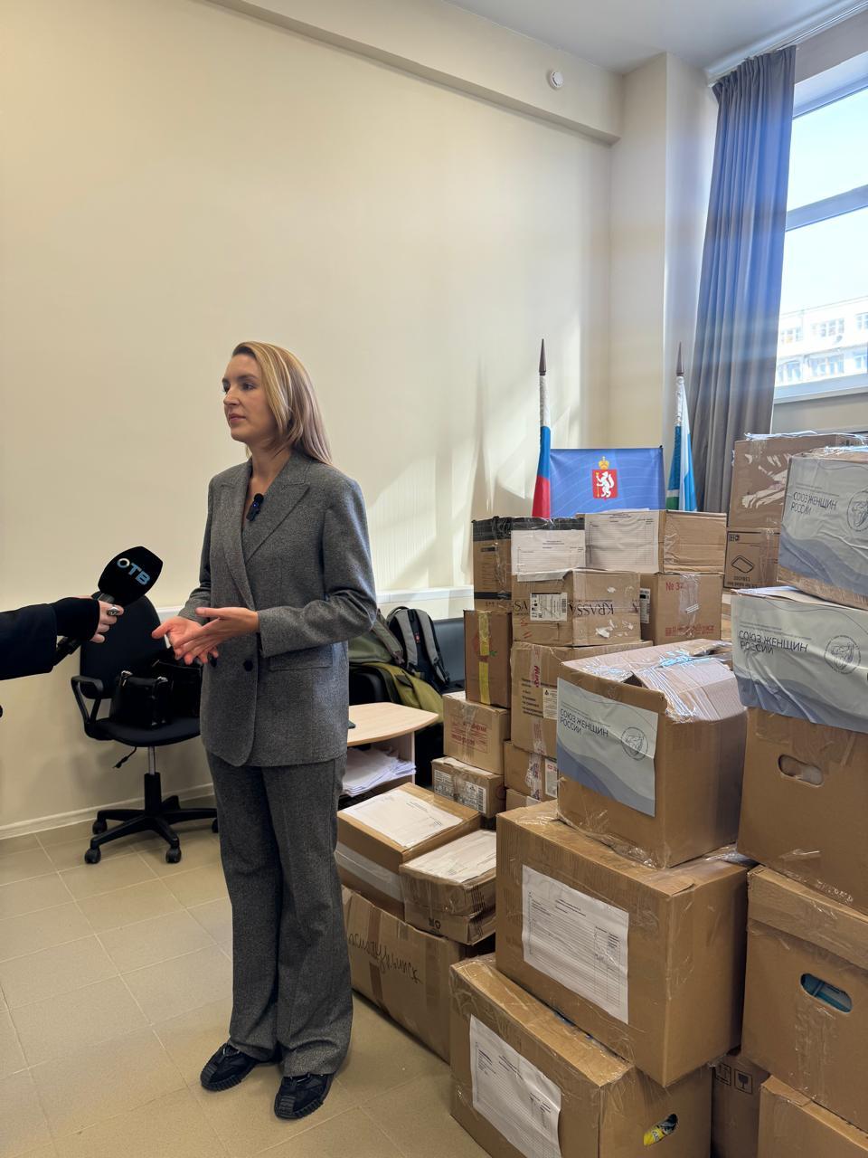 «За последние два месяца все жители Свердловской области объединились в едином порыве, и мы собирали разные предметы первой необходимости, личной гигиены, канцелярские товары, тёплые вещи, которые сейчас очень необходимы», – заместитель председателя регионального отделения Союза женщин России Ирина Богинская.