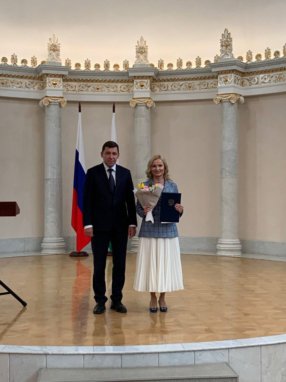 Награду за активное участие в общественной и благотворительной деятельности ей вручил губернатор Свердловской области Евгений Куйвашев