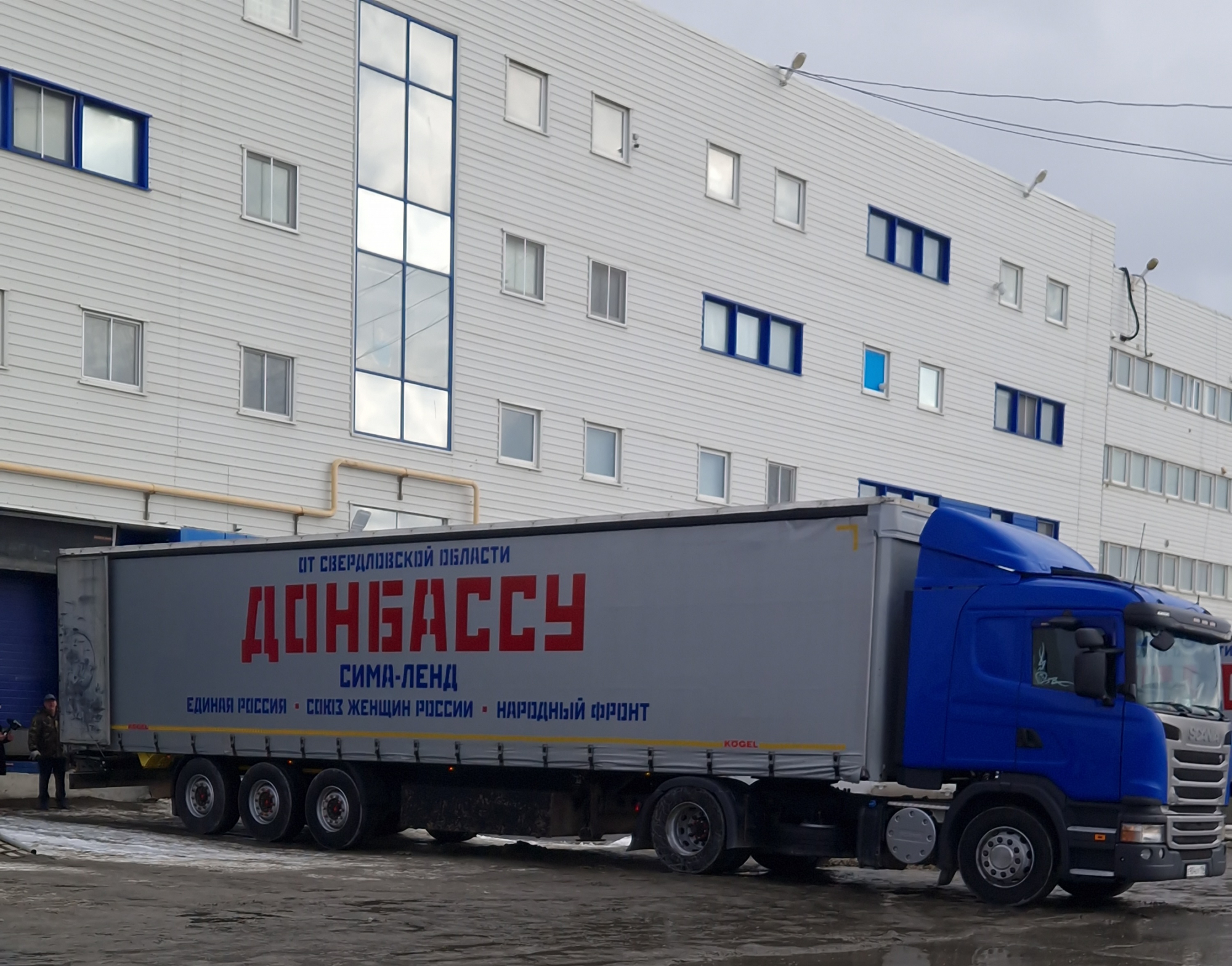 Гуманитарный груз собран Свердловским региональным отделением Союза женщин России, ОНФ, региональным отделением «Единой России», компанией «Сима-Ленд».