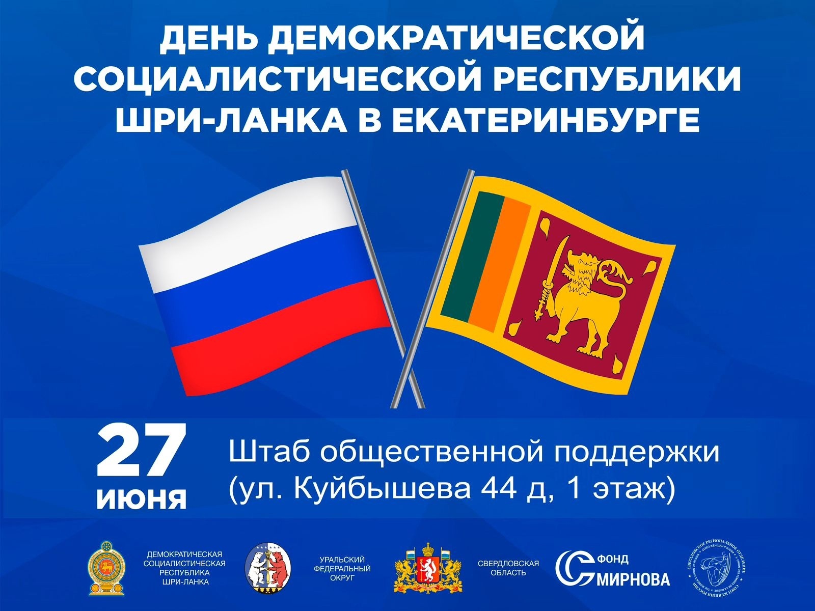 27 июня с 18:00 до 19:30 в Штабе общественной поддержки по адресу Екатеринбург, ул. Куйбышева, 44Д (1 этаж) состоится День Демократической Социалистической Республики Шри-Ланка, партнером которого выступает Союз женщин России Свердловского отделения