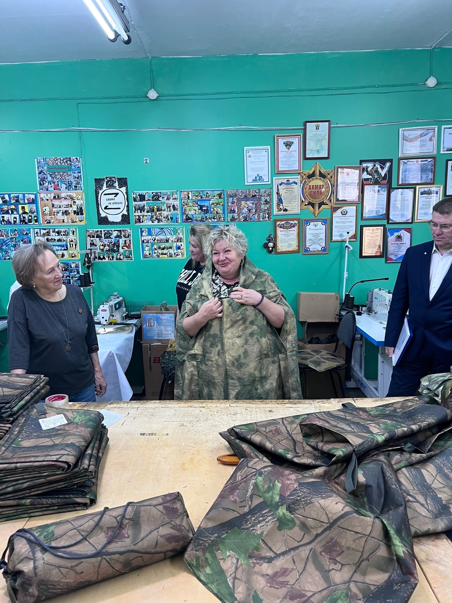 Волонтеры из «Тепло матери», которые сплотили всех, кто готов не словом, а делам помогать нашим защитникам, шьют одежду и маскировочные одеяла на фронт большими партиями! Продукция поражает качествам материалов и объемом работ. Волонтеры проявляют мастерство рукоделия и технологии так, что ребята «за ленточкой» уже знают и заказывают именно Сысертское!