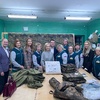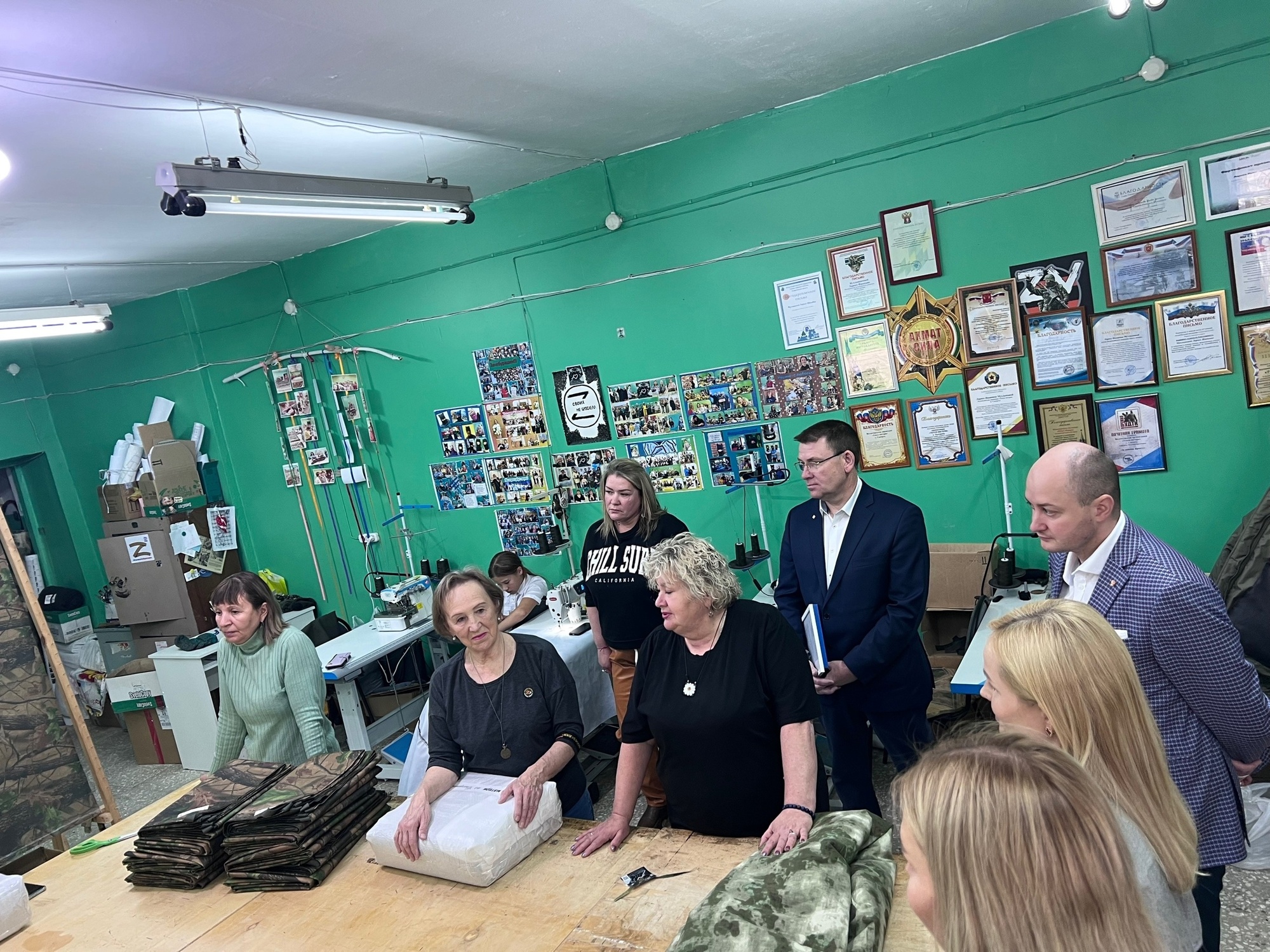 Свердловское РО «Союза Женщин России» поздравили волонтеров за двухлетний труд в поддержку фронту и вручили камуфляжную ткань для пошива одежды бойцам.